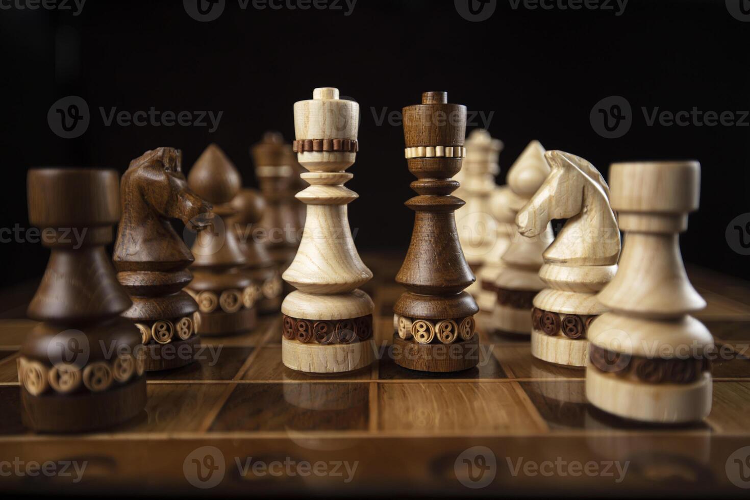 Chess on a dark background. A puzzle game with tricky combinations that requires planning and thinking. Pro Photo