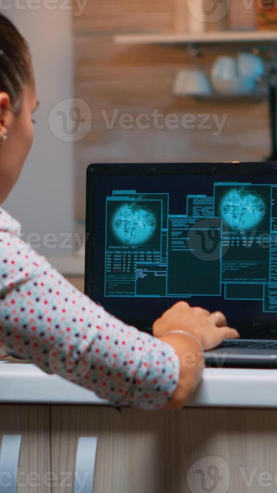 Hacker failing matching password and nervously closing laptop in midnight. Woman programmer writing a dangerous malware for cyber attacks using performance computer late at night. Pro Photo