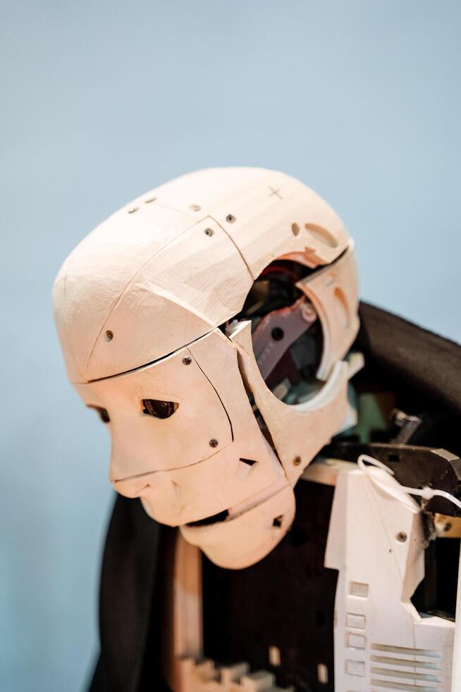 The head of a robot. Artificial intelligence. The robot says. A look at the machine. Exhibition of robots. Free Photo