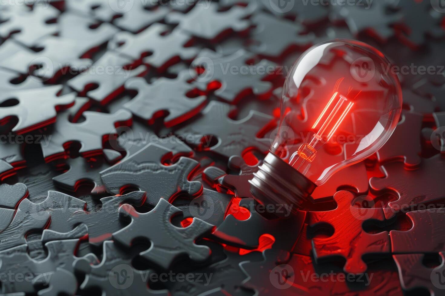 AI generated Puzzle Pieces and Light Bulb in the concept of solving creative problems Pro Photo