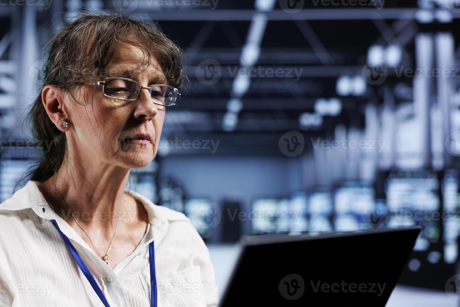 Professional in cloud computing business providing computing resources needed for AI to process extensive datasets for training. Server hardware storing datasets used for machine learning, close up Pro Photo