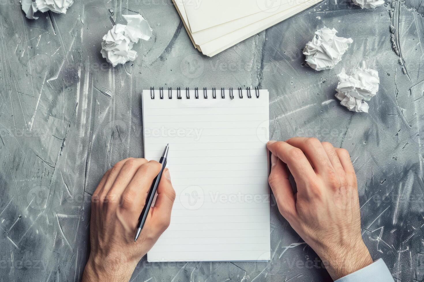 AI generated Man brainstorming ideas with a notepad and pen. Hand with pen writing on notebook. Generative AI Pro Photo