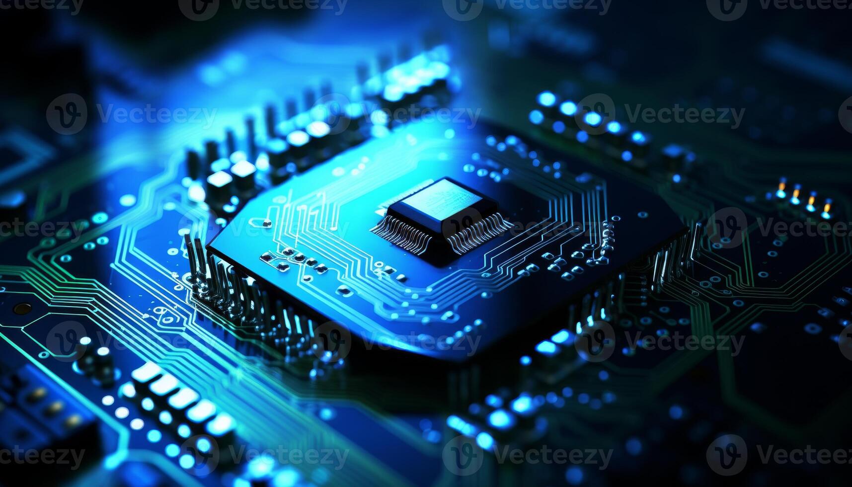 AI generated Glowing computer chip illustrating the crucial concept of cyber security and data protection Pro Photo