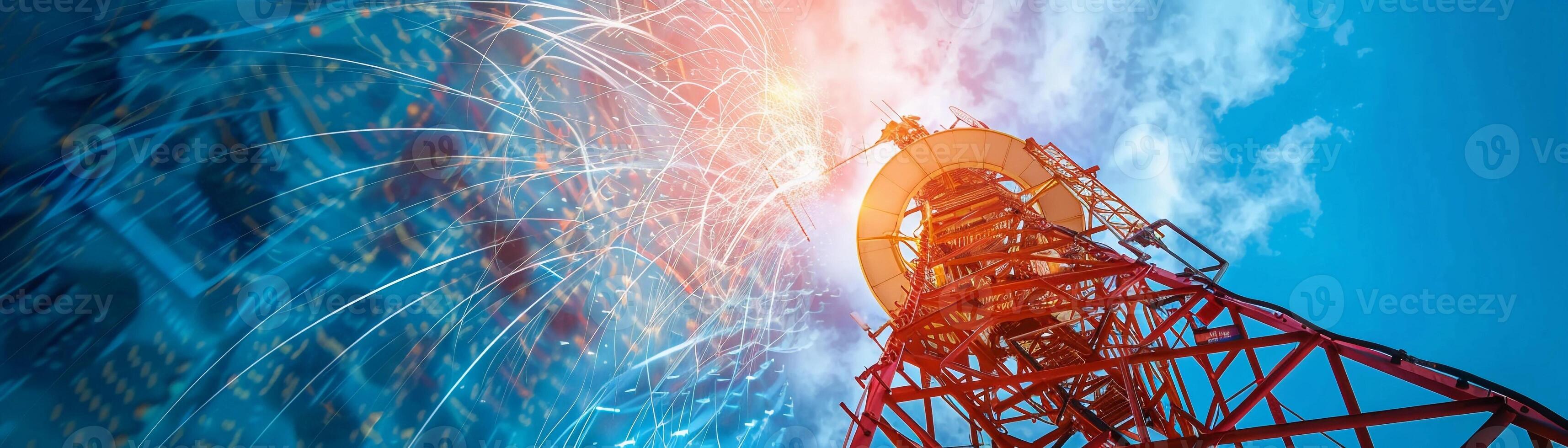AI generated Radio Waves, a radio tower transmitting electromagnetic waves, with radio frequency RF waves emanating from the antenna, generative AI Pro Photo