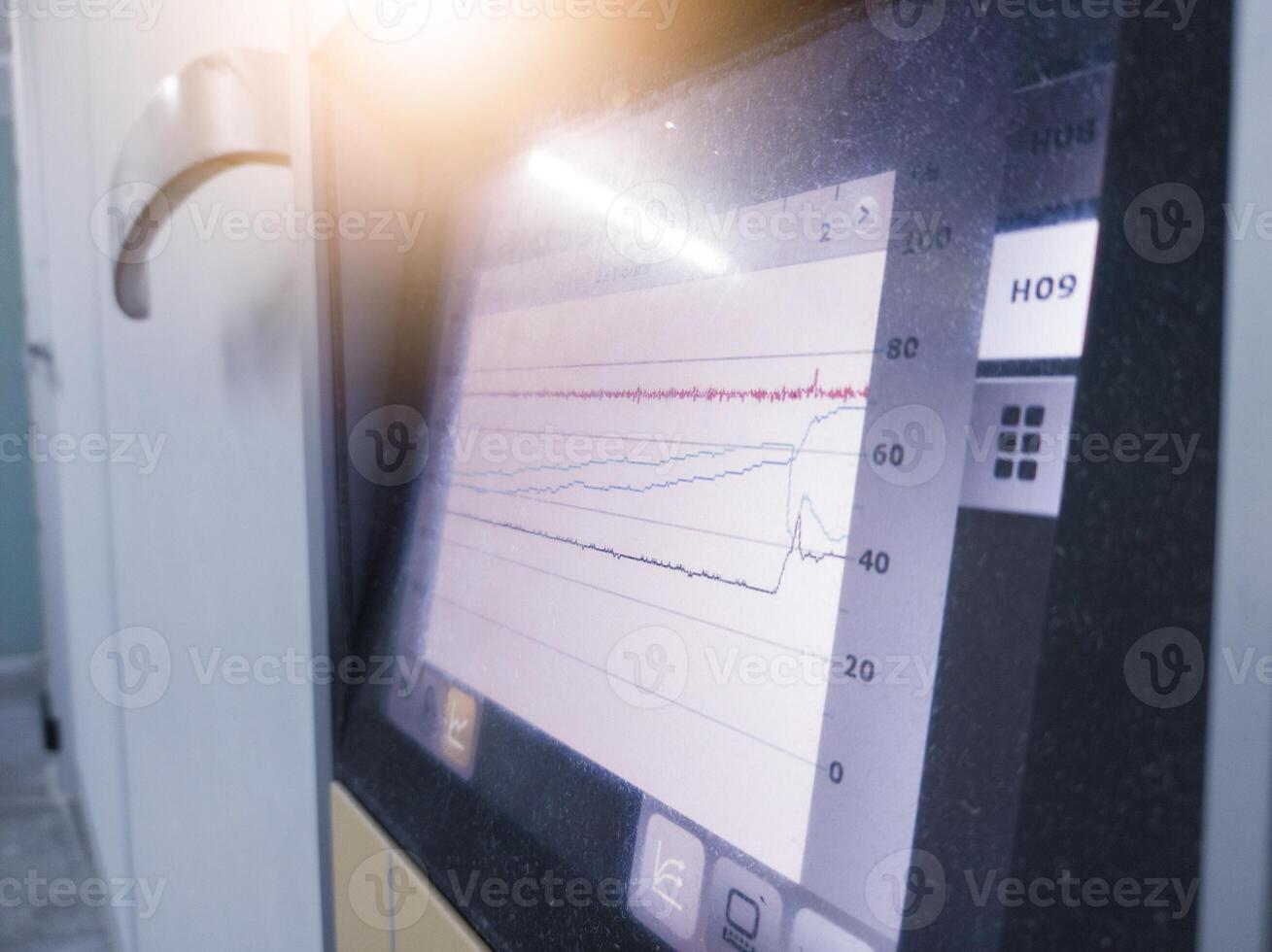 Close up the data graphics on display Technology of hatchery machine. Pro Photo