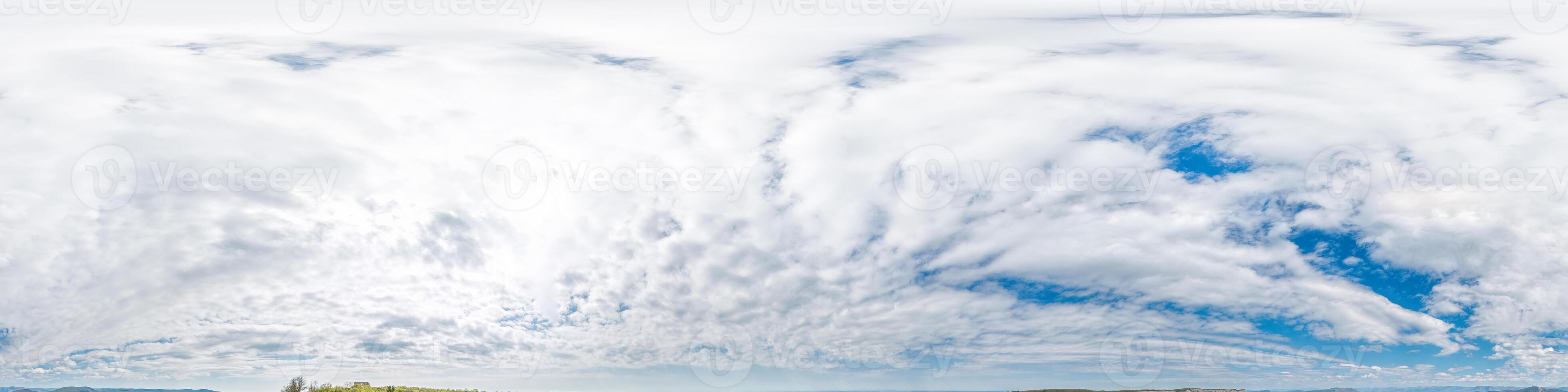 Seamless sky panorama on overcast day in spherical equirectangular format with complete zenith for use in 3D graphics, game and for composites in aerial drone 360 degree panoramas as a sky dome. Pro Photo