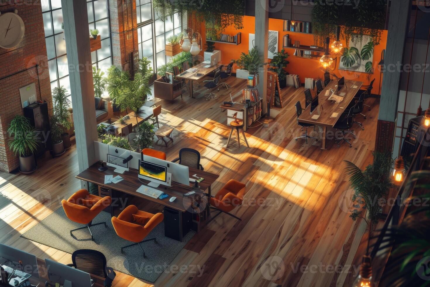 AI generated A coworking hub, featuring shared workspaces, networking events Pro Photo