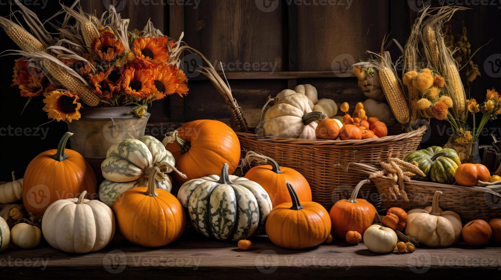 AI generated Harvest still life featuring pumpkins of various shapes and sizes. Generative AI Pro Photo