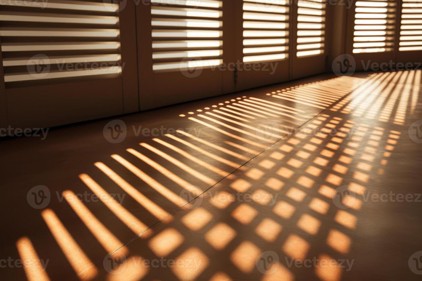 AI generated A close up of sunlight streaming through blinds, casting geometric patterns on the floor. Generative AI Pro Photo