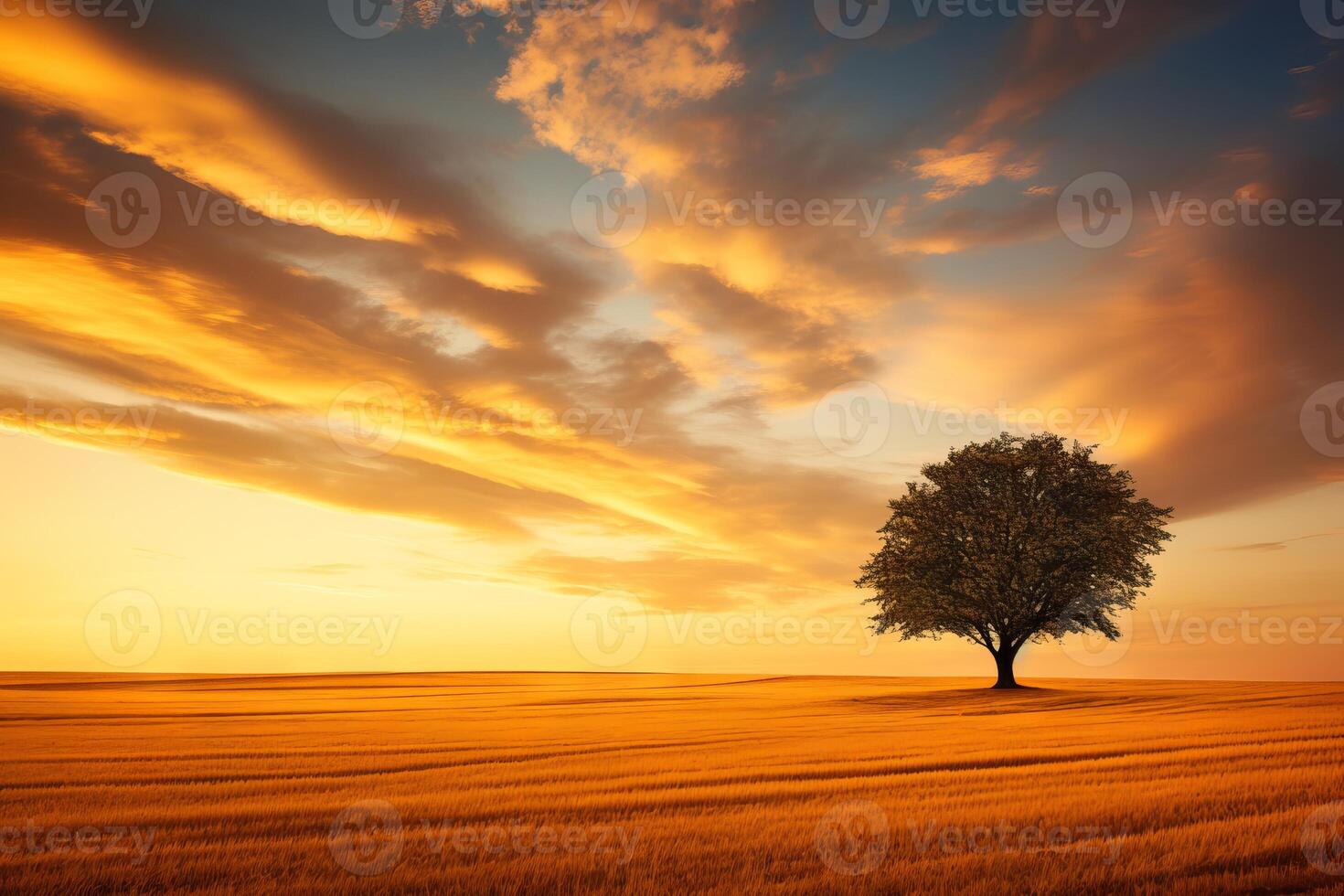 AI generated The silhouette of a lone tree in a golden field. Generative AI Pro Photo