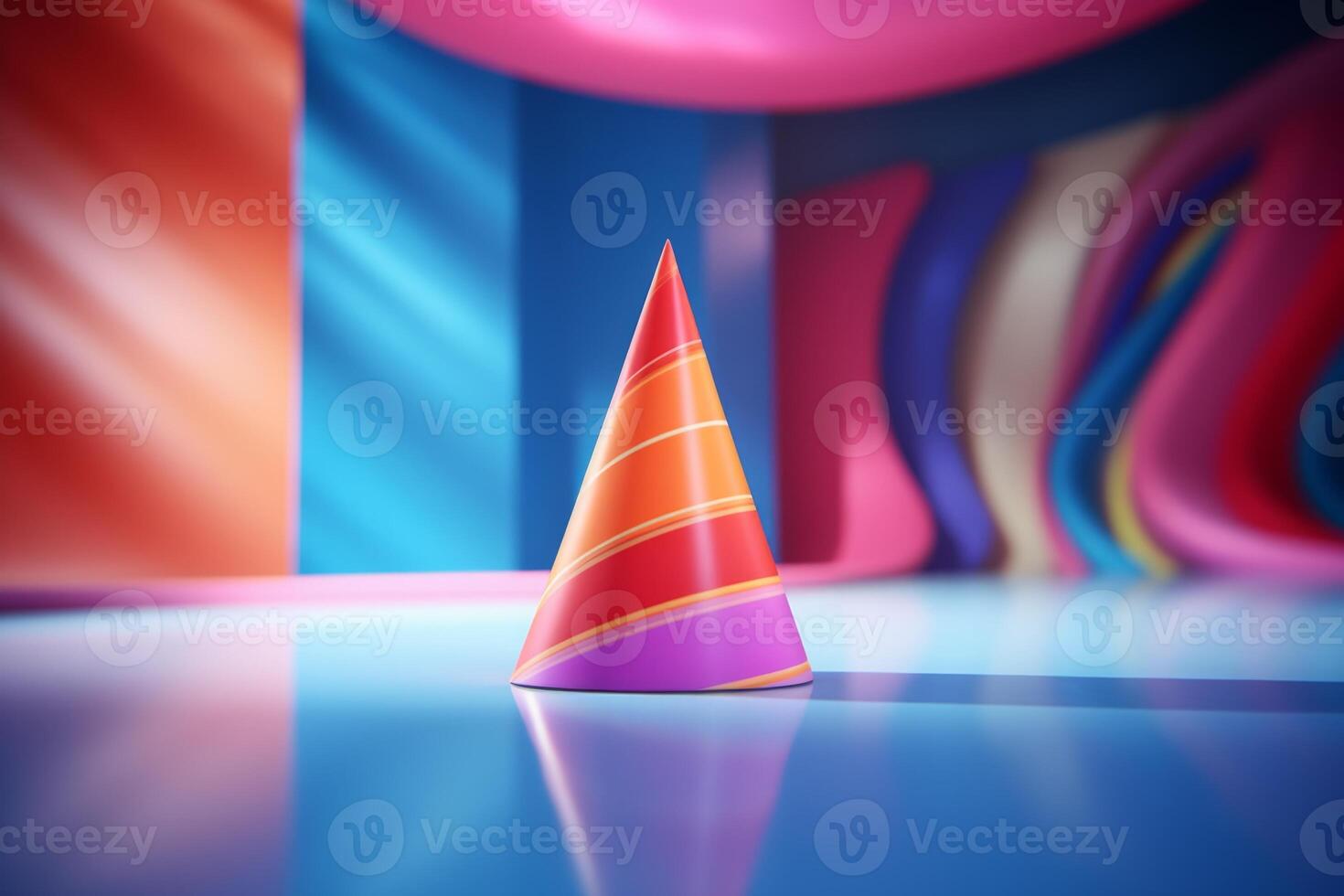 AI generated A fluid motion shot of a 3D cone rotating gracefully in a colorful environment. Generative AI Pro Photo