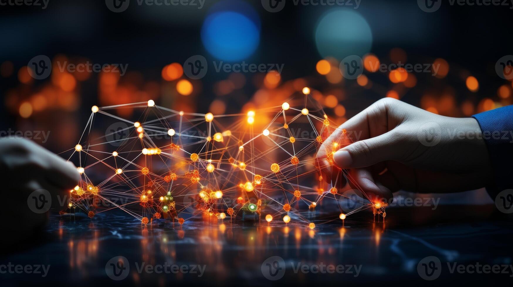 AI generated Artificial intelligence and human interaction with big data network connection background Pro Photo
