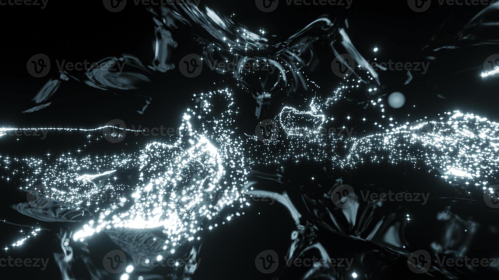 Cyberspace with metallic lines and streams of luminous particles. Design. Bright streams of energetic particles in virtual space. Streams of moving luminous particles of information and energy of Pro Photo