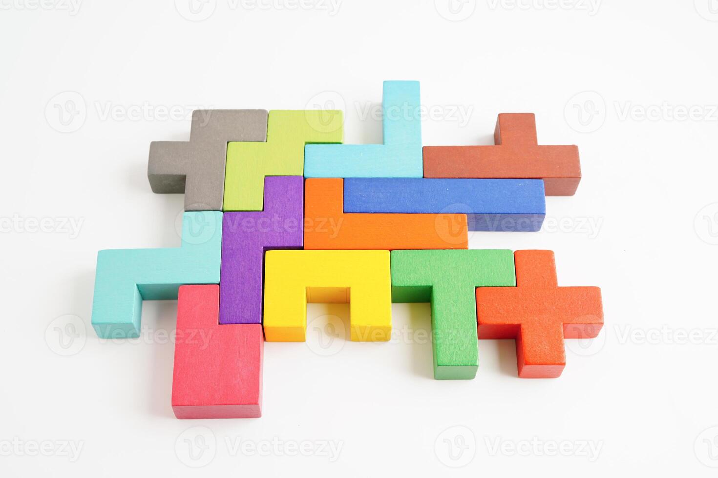 Logical thinking and problem solving problem solution creative business concept, wooden puzzle geometric block shape. Pro Photo