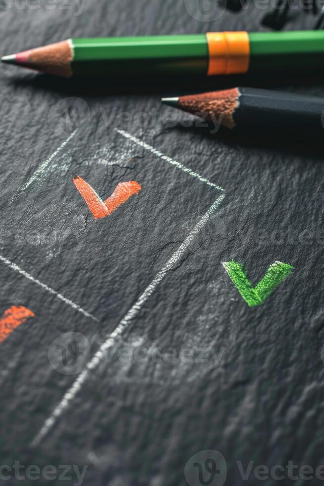 AI generated A checklist with a green check mark and red crosses Pro Photo