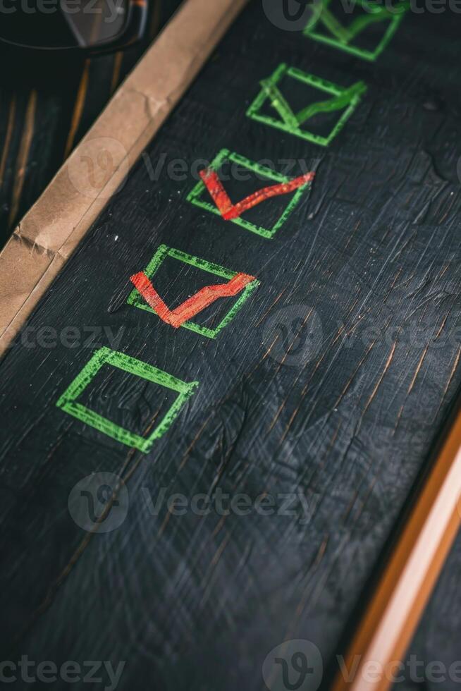AI generated A checklist with a green check mark and red crosses Pro Photo