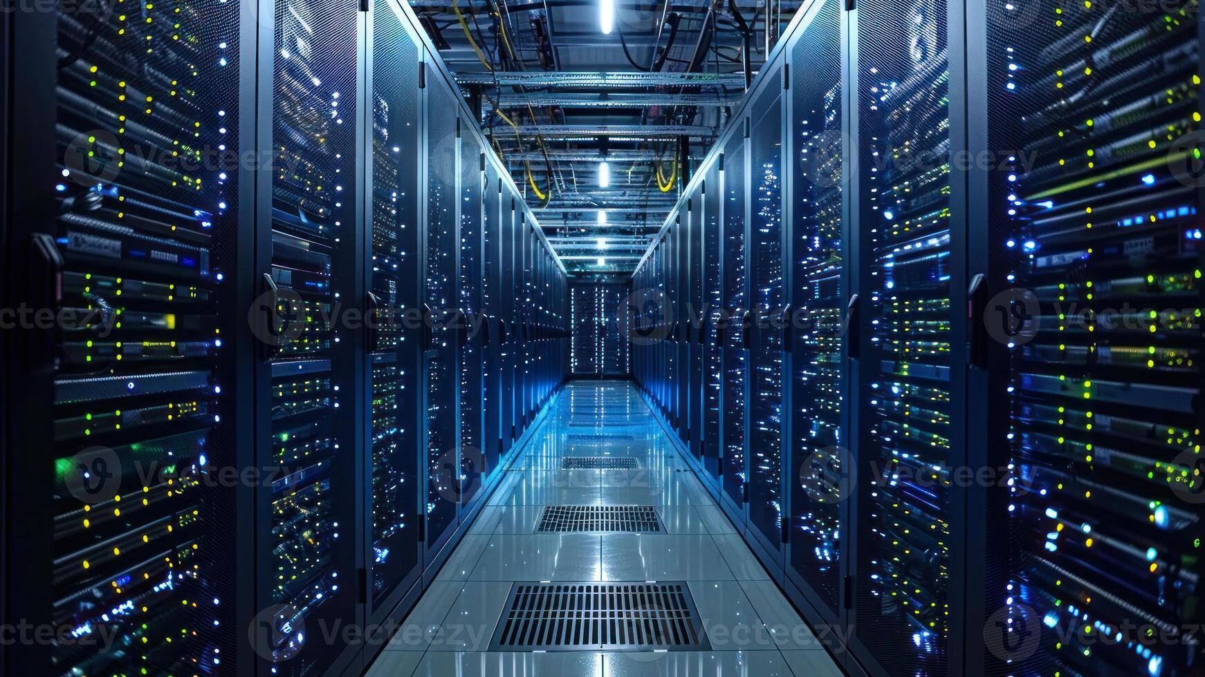 AI generated Modern Data Center with Rows of High-Tech Servers Pro Photo