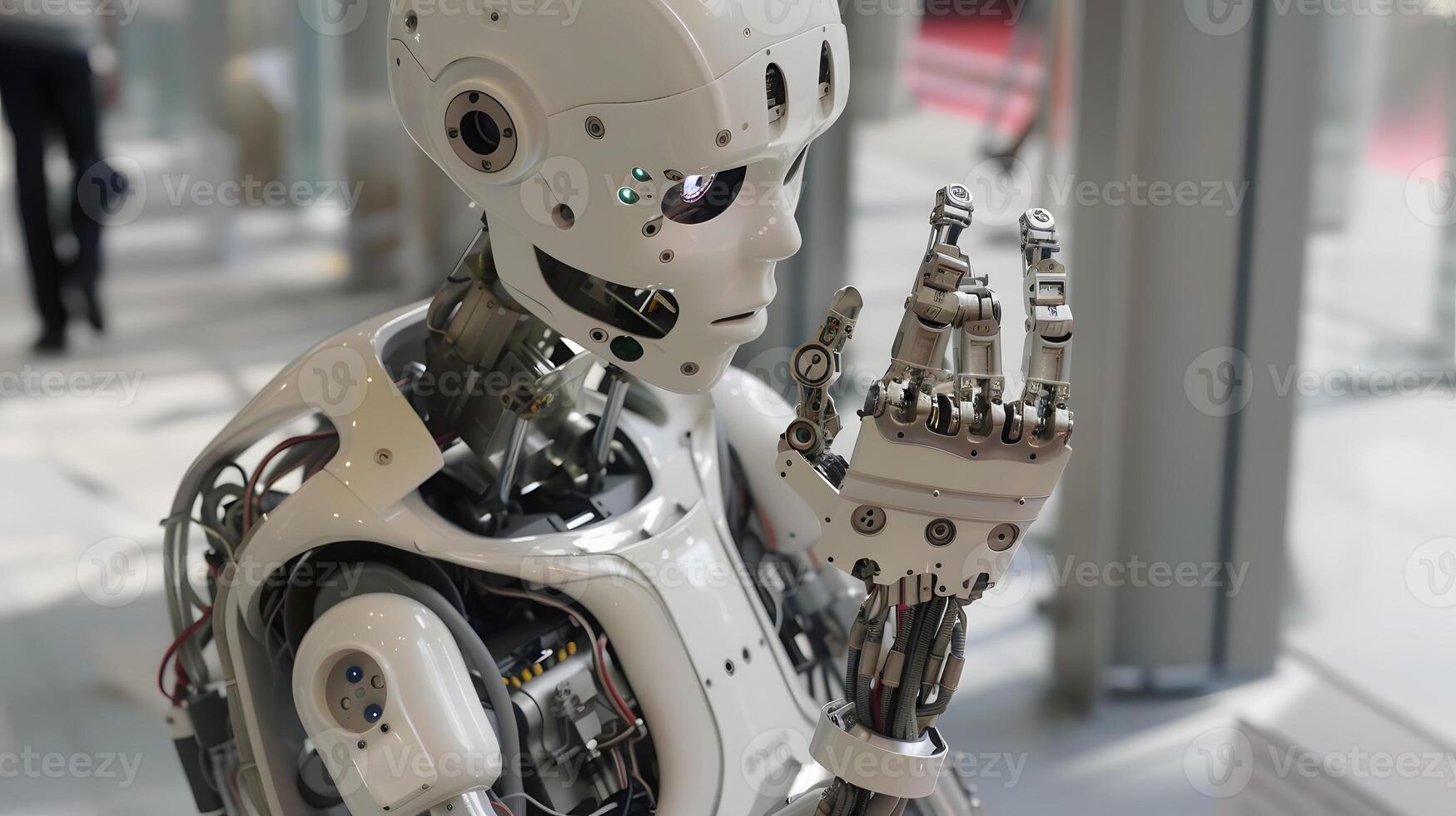 AI generated The robot, the android, is ready to perform work functions. AI Generated Pro Photo