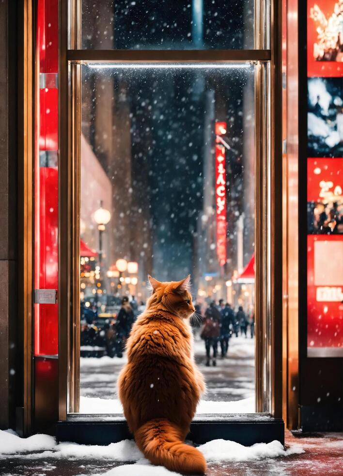 AI generated Ginger cat sitting on snow and looking at camera. Winter background. ai generative Free Photo
