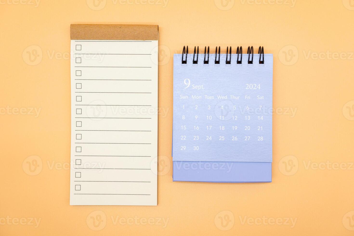 Blank to do list for text with checkbox and Simple desk calendar on SEPTEMBER 2024. Empty Check list. Copy Space. isolated background. To do list in September 2024. Pro Photo