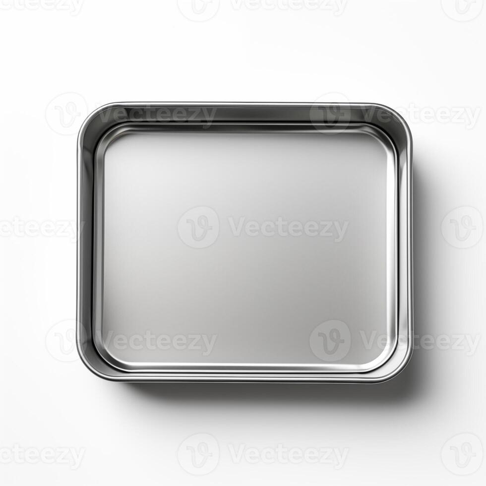 Rectangular tin box with an open lid. Metal box for various purposes. Isolate on a white back Pro Photo