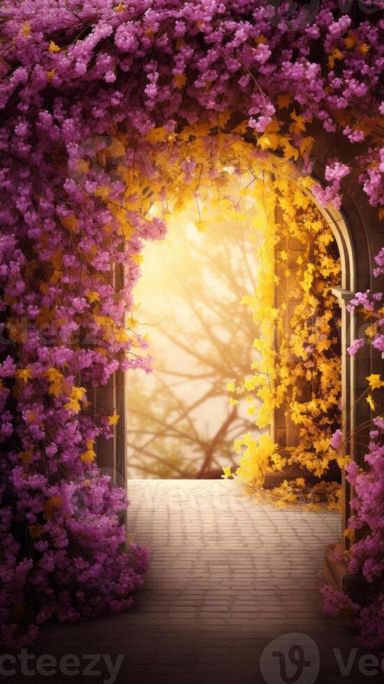 Enchanting Flower Tunnel With Illuminated Exit. . Pro Photo