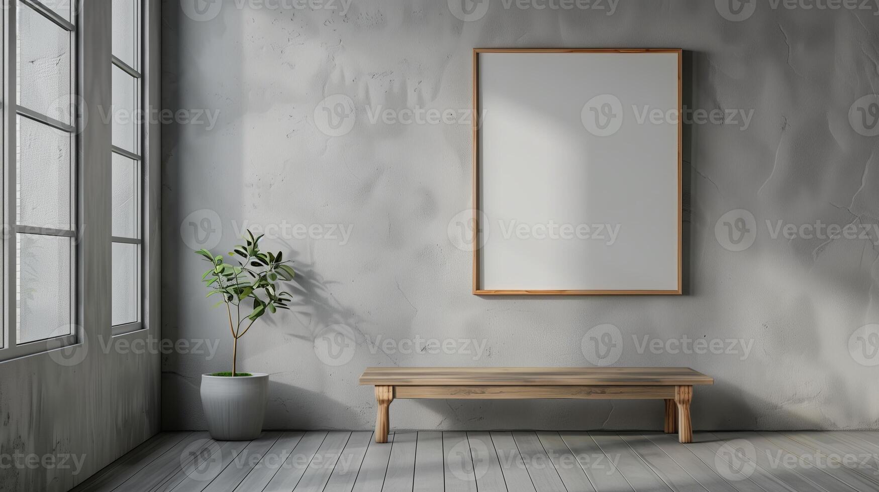 AI generated An empty rectangle frame mockup from oak wood in a beautiful gray room. Generated by artificial intelligence. Pro Photo