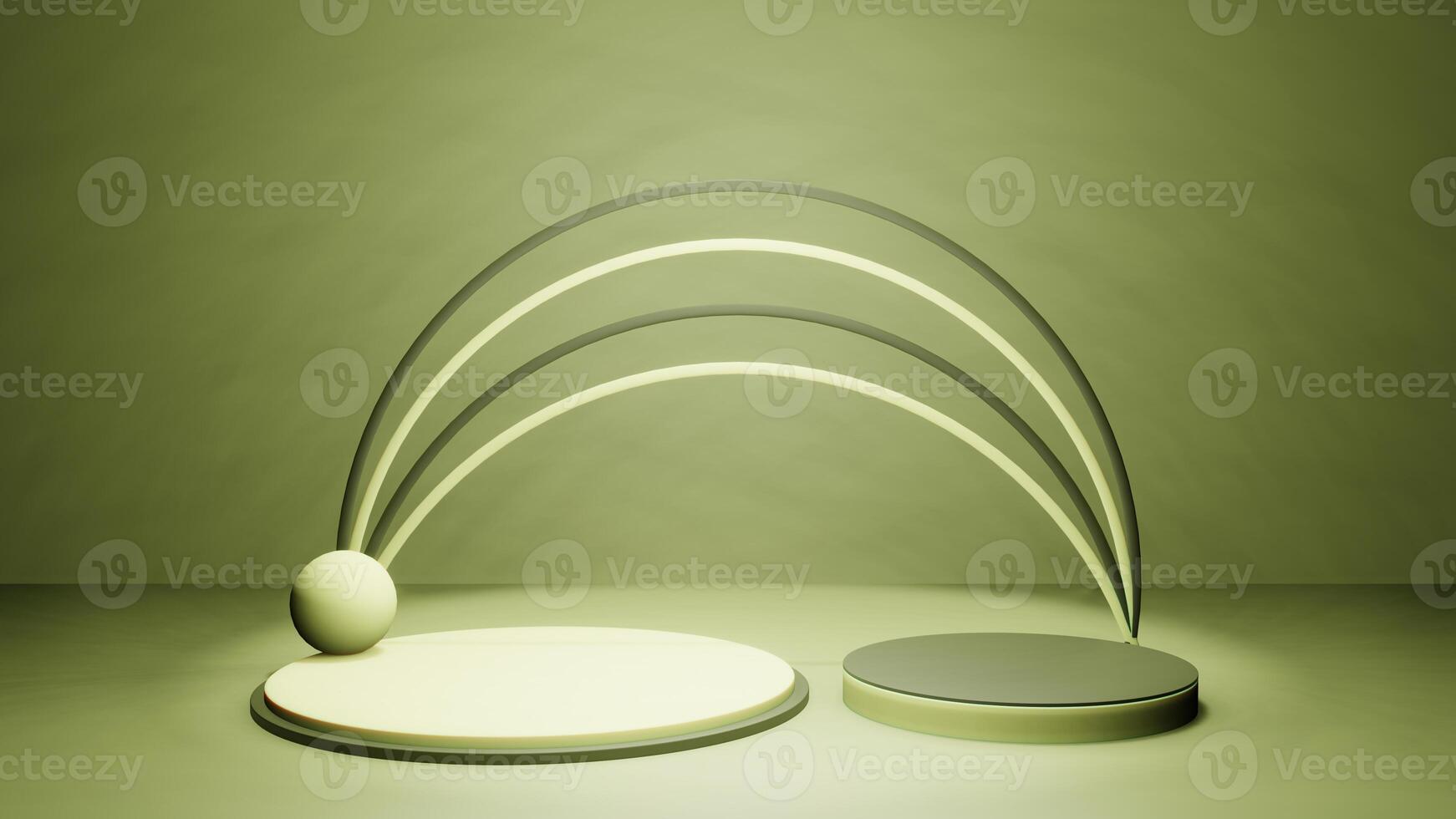 Abstract empty podium with shadows on green background. Mock up stand for product presentation. 3D Render. Minimal concept. Advertising template Pro Photo