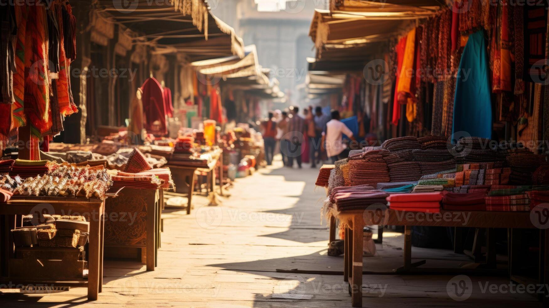 AI generated A bustling bazaar with colorful textiles. Generative AI Pro Photo