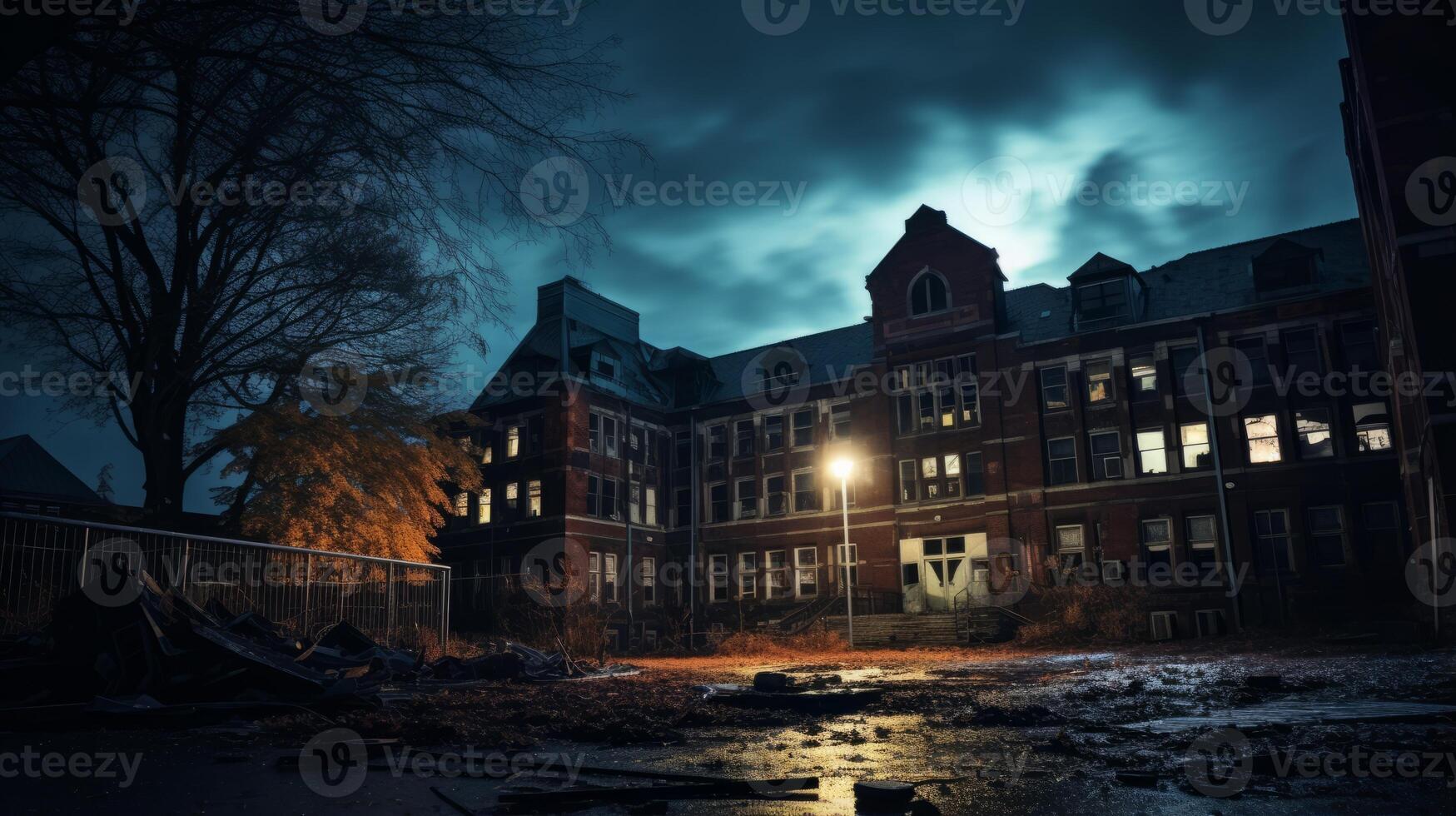 AI generated Building with a lot of windows and a street light. Generative AI Pro Photo