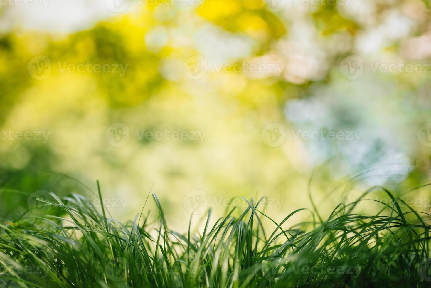 Spring or summer and abstract nature background with grass field. Background with green grass field and bokeh light. summer background. Pro Photo