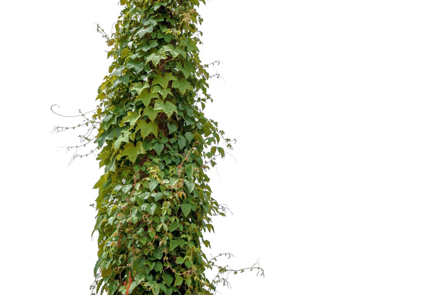 Weeds twining around a tree trunk, isolated on a white background with clipping path photo