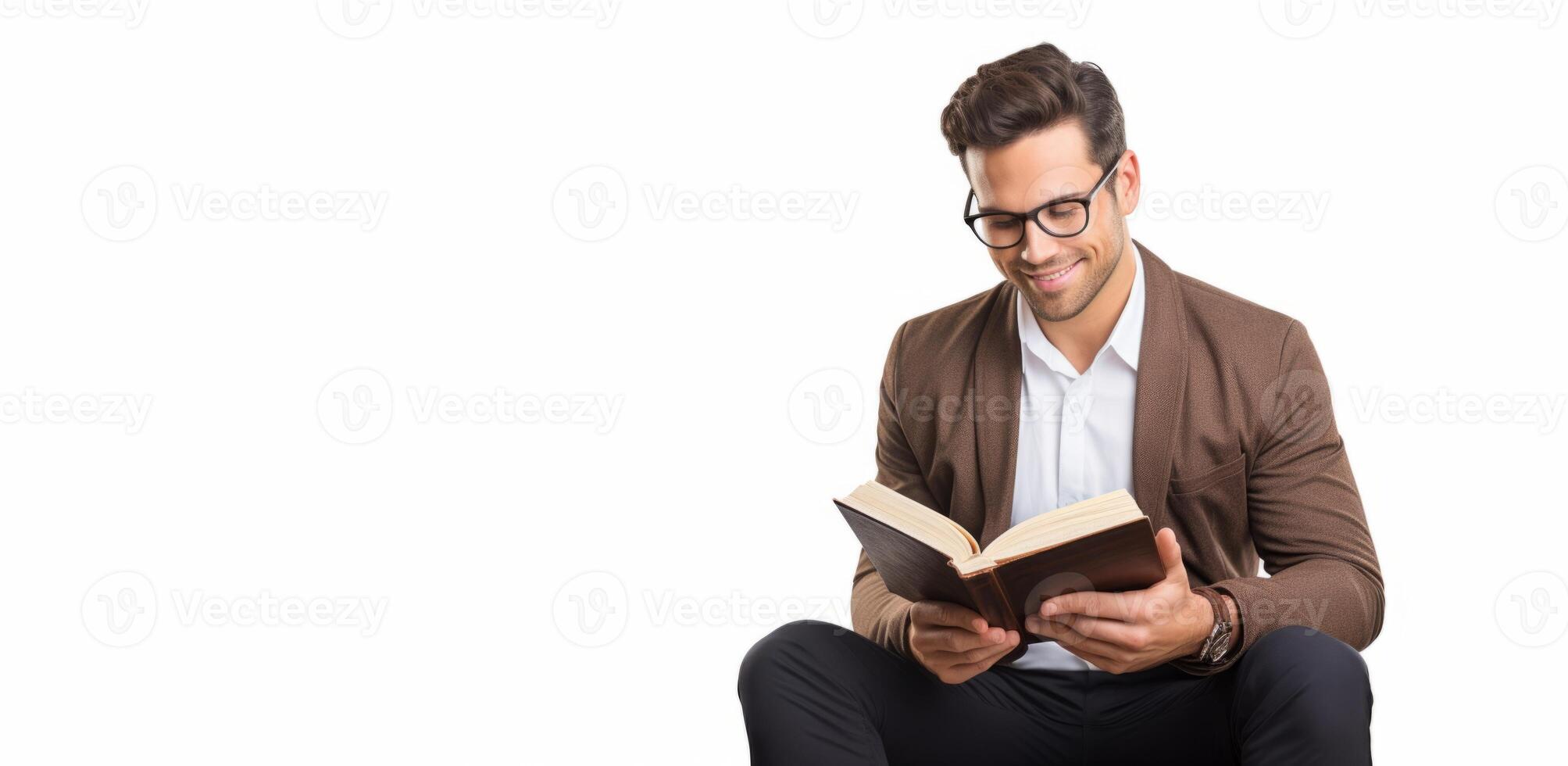 AI generated man reading a book on a white background Generative AI Pro Photo