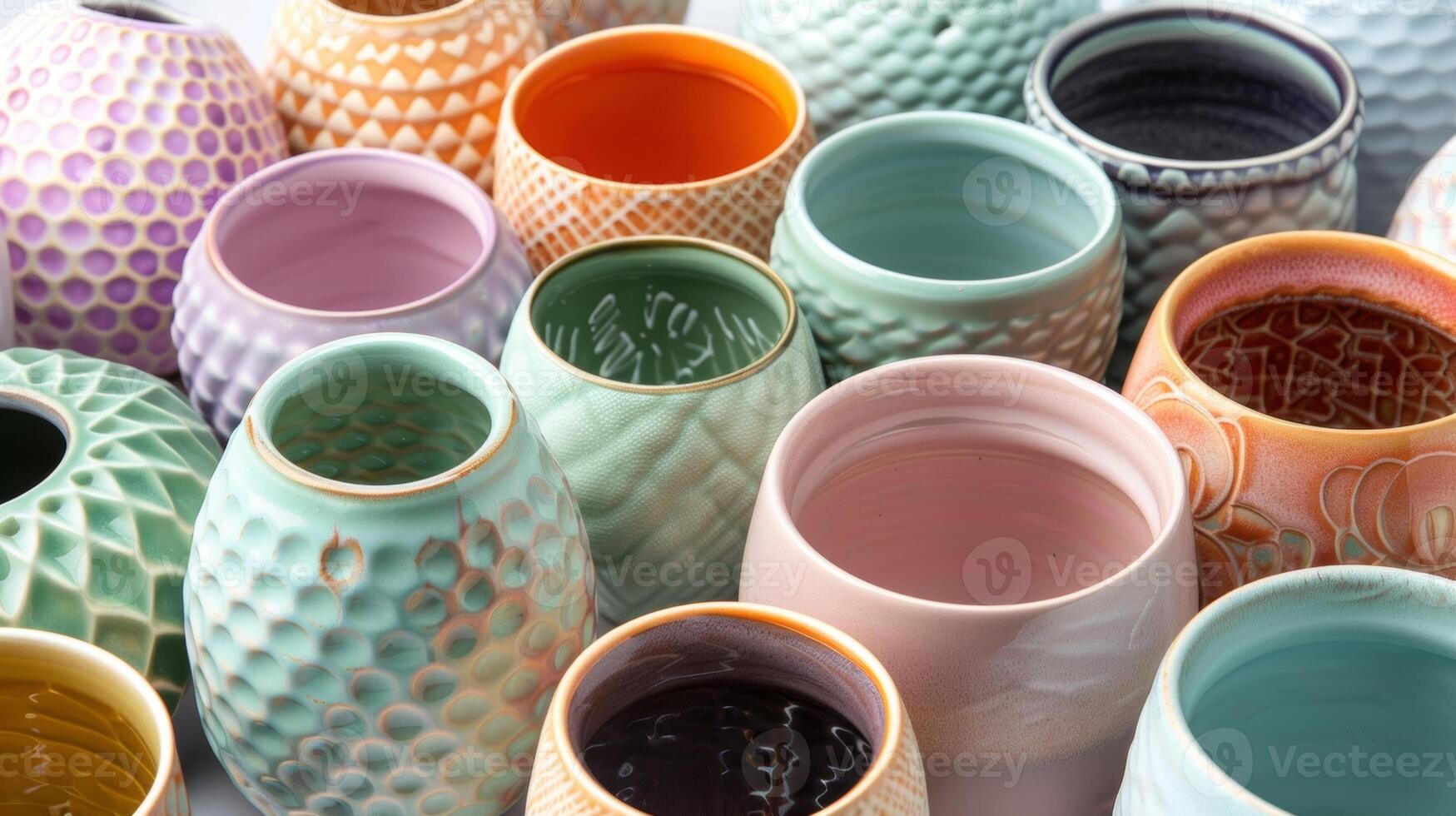 A set of colorful ceramic s with different textures some smooth some patterned each one unique and eyecatching. Pro Photo