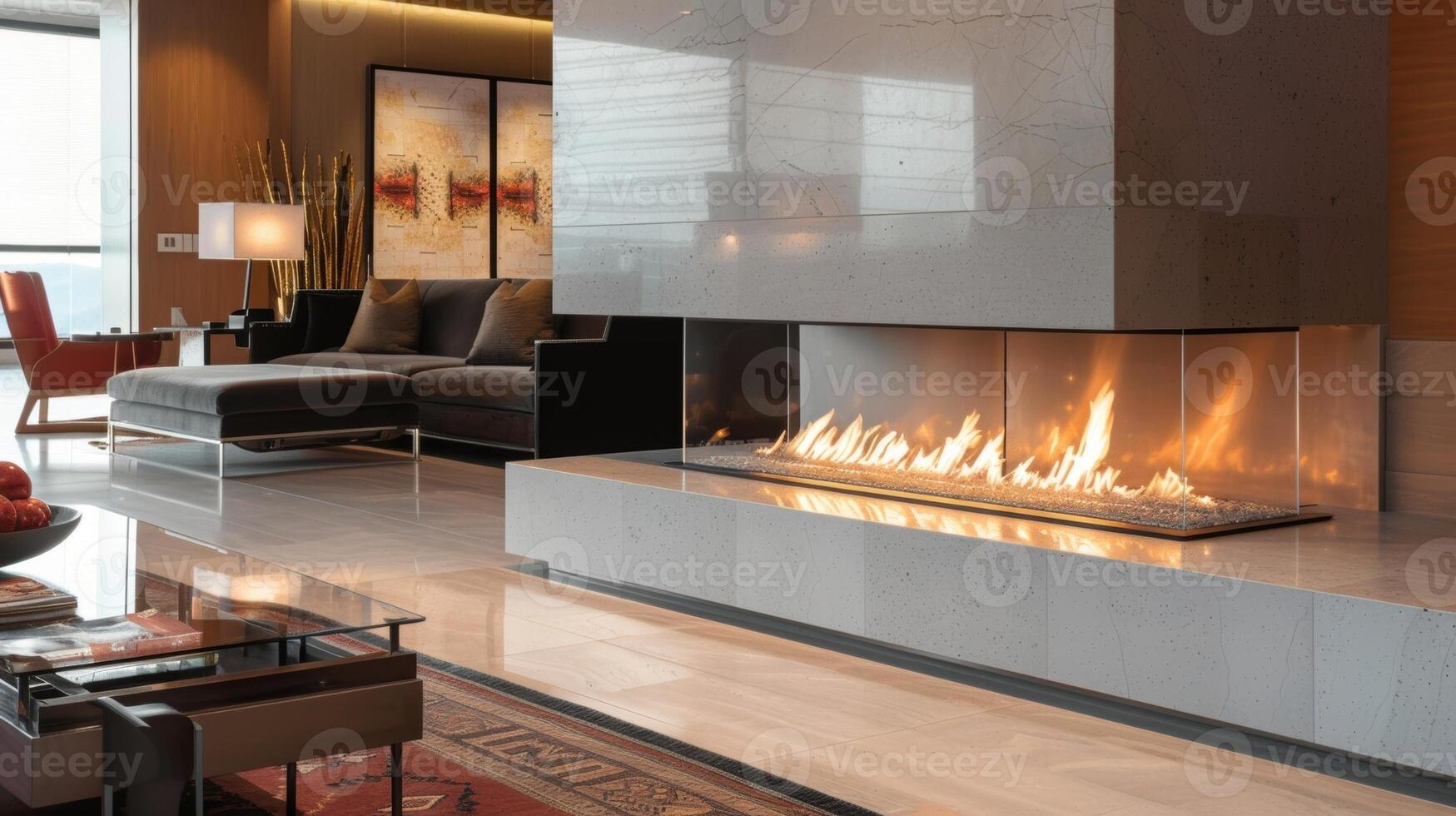 The fireplace with its gl and modern aesthetic serves as a stylish and functional addition to the sleek and sophisticated setting of the art gallery. 2d flat cartoon Pro Photo