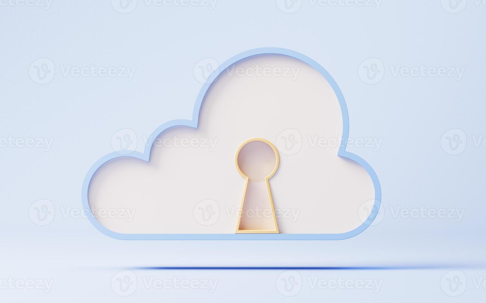Cloud computing with security lock, 3d rendering. Pro Photo