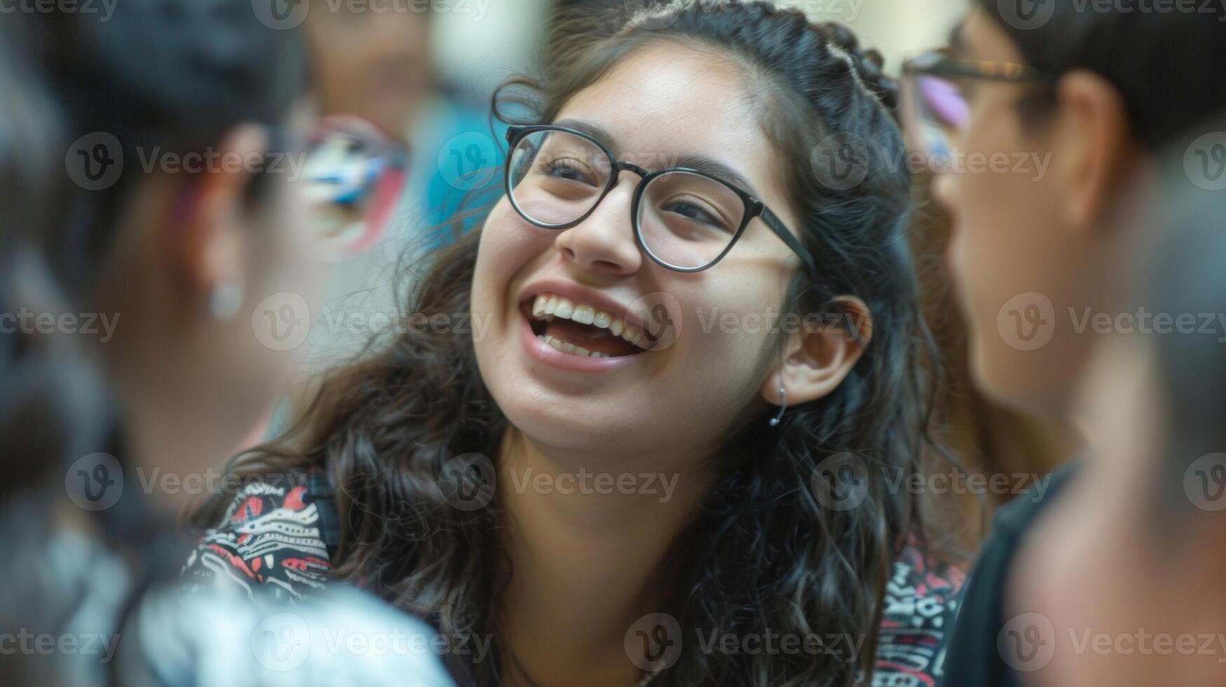 A closeup of a group of students participating in a language immersion program eagerly conversing with each other in their newly learned language illustrating the communicatio Pro Photo