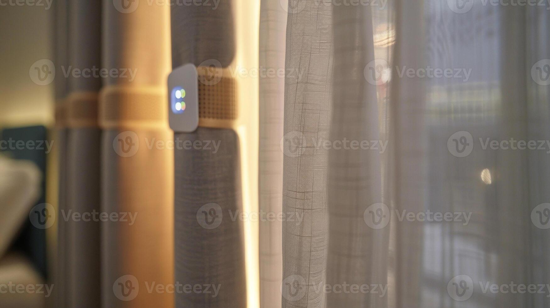 In the next image we see a closeup of the smart curtains security feature. With the use of motion sensors the curtains can automatically close when no one is in the room addin Pro Photo