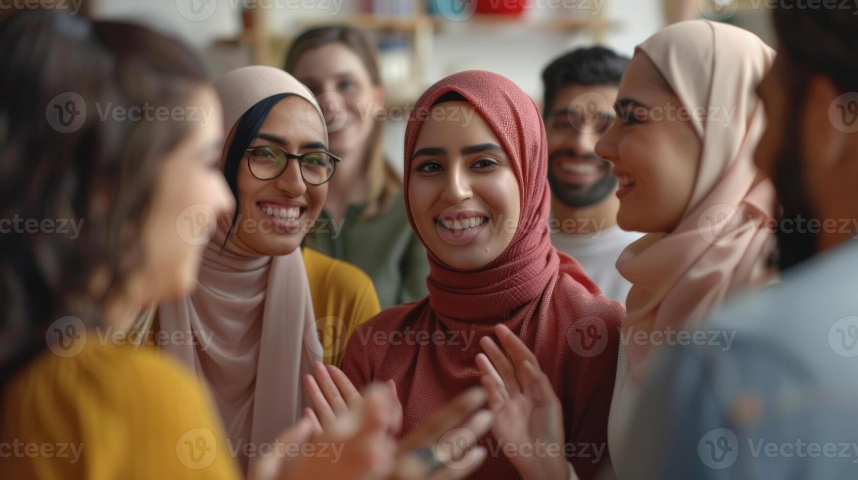 A group of diverse individuals from different backgrounds and abilities linked together through the common language of silent speakers creating a powerful moment of understanding and Pro Photo