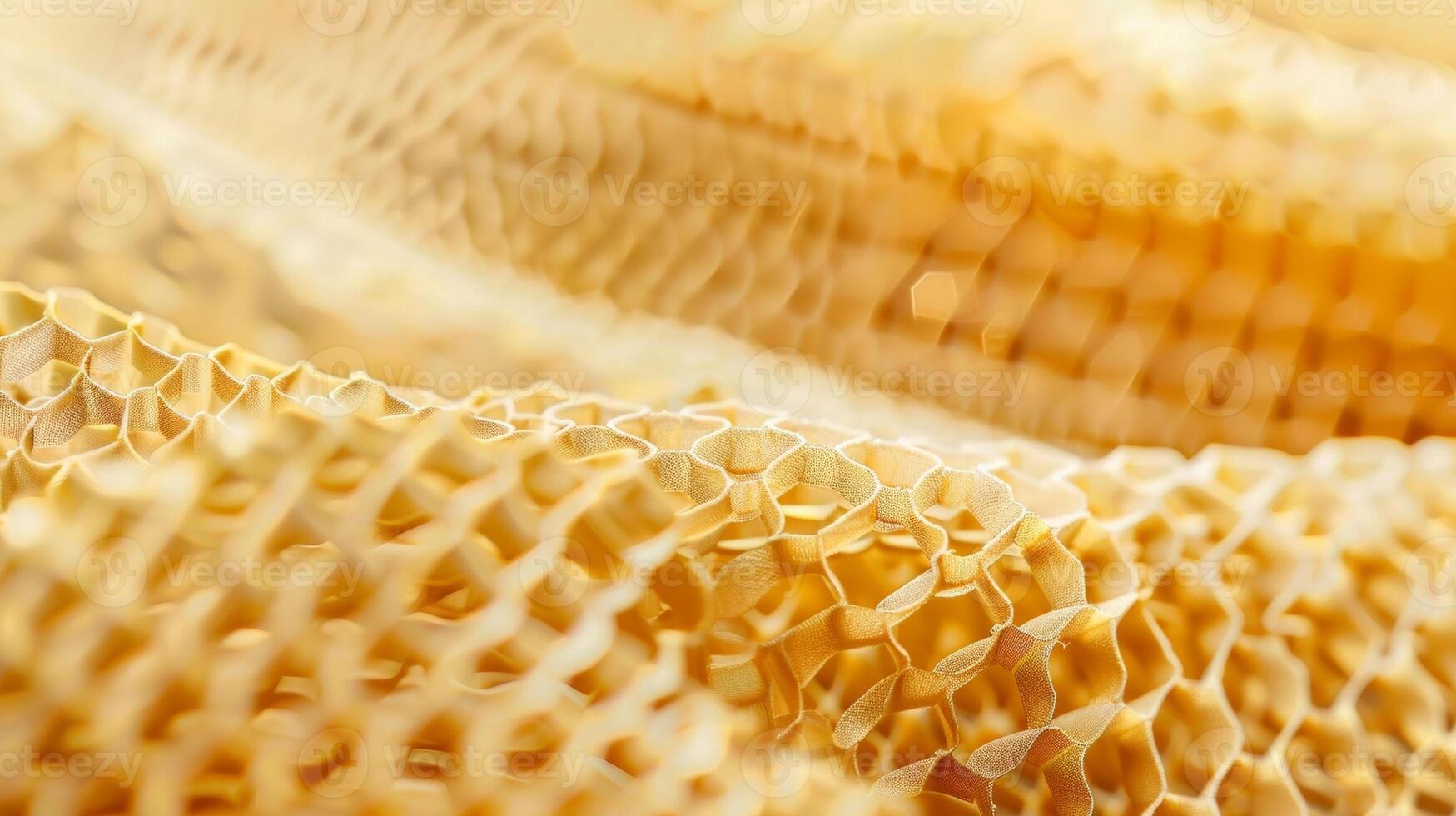 A closeup of a meshlike material with a honeycomb pattern and a series of small holes. This biocompatible material is used to create surgical mesh providing support and reinforcemen Pro Photo