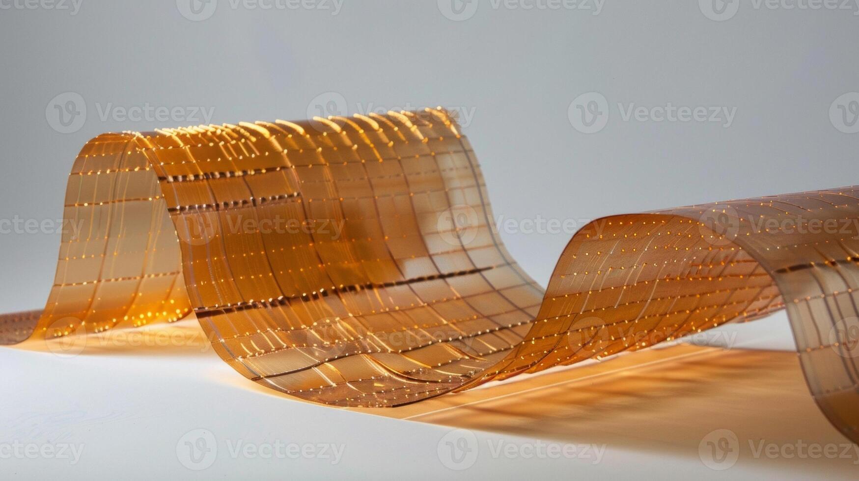 A detailed image of a flexible substrate with numerous embedded piezoelectric elements. The ultrathin material can be bent and molded to fit into various shapes making i Pro Photo
