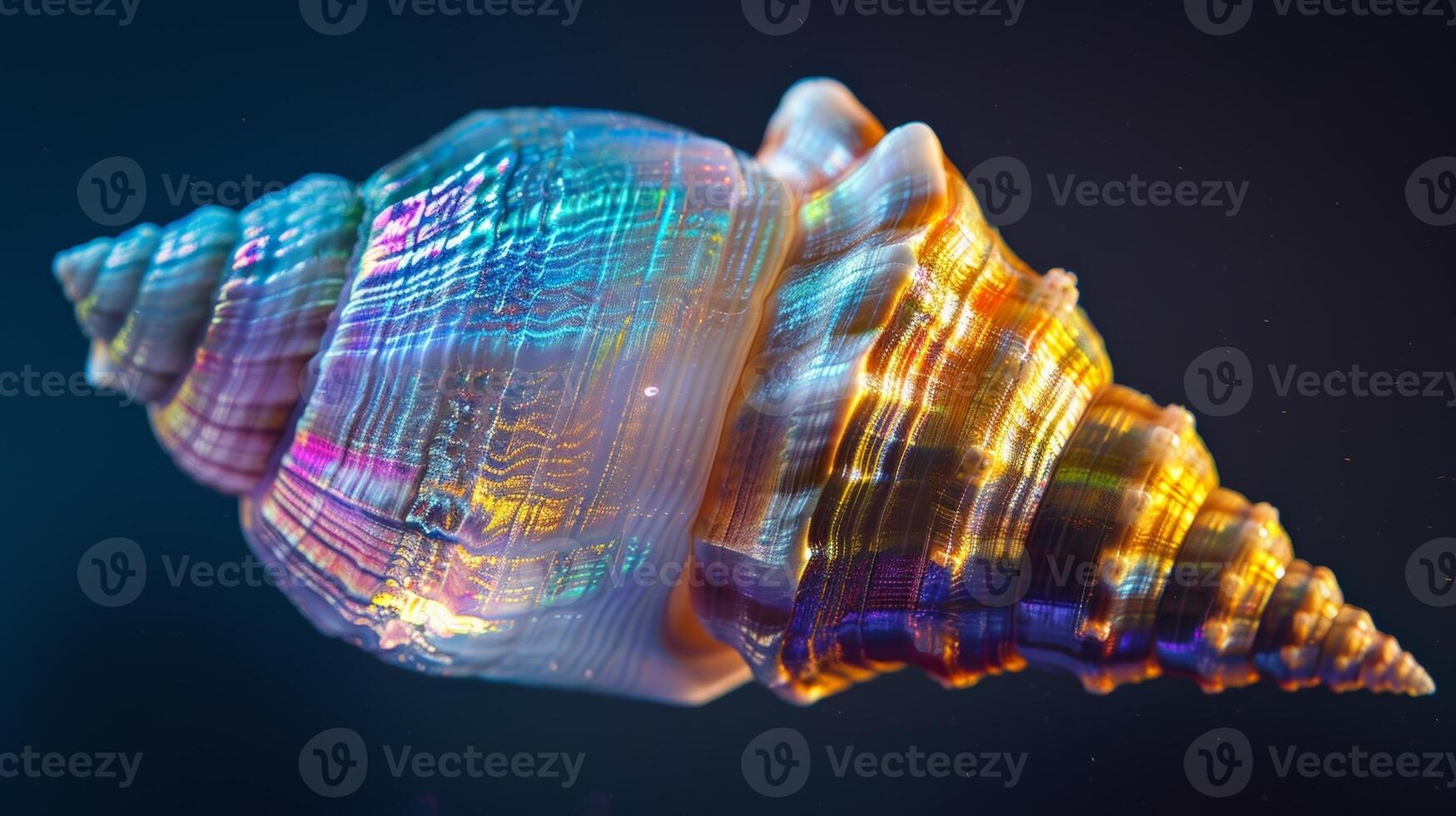 The closeup view of a luminescent seashell displaying its iridescent sheen against a dark background creating a mesmerizing effect Pro Photo