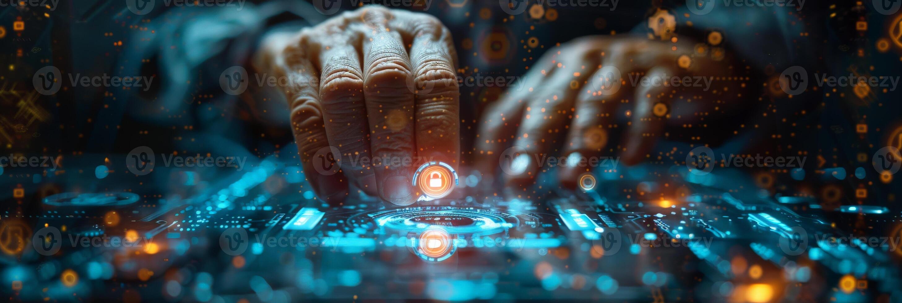A person is using their thumb to press a button on a futuristic screen Pro Photo