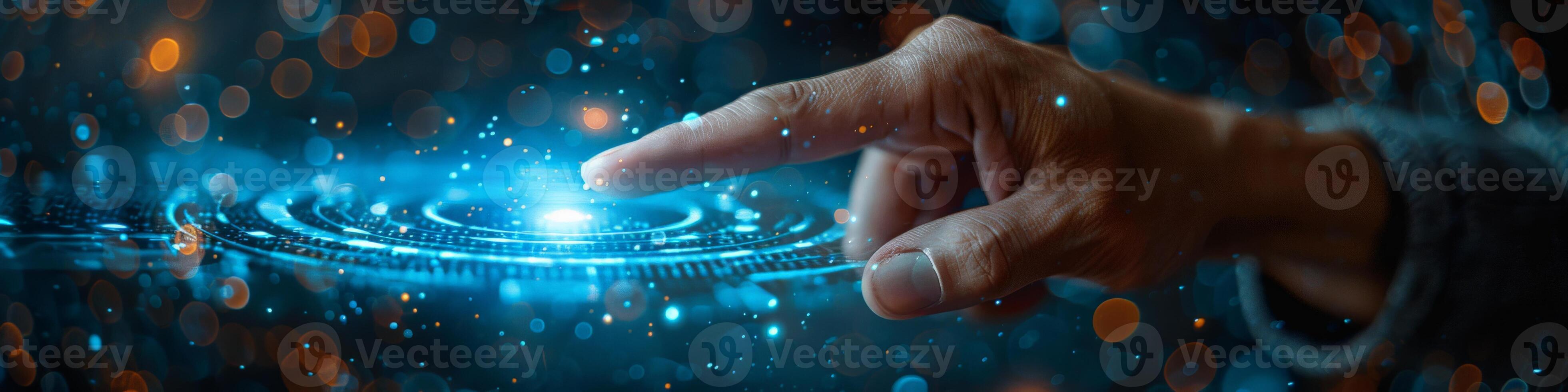 A hand is pressing a button on a digital screen displaying a blue liquid Pro Photo