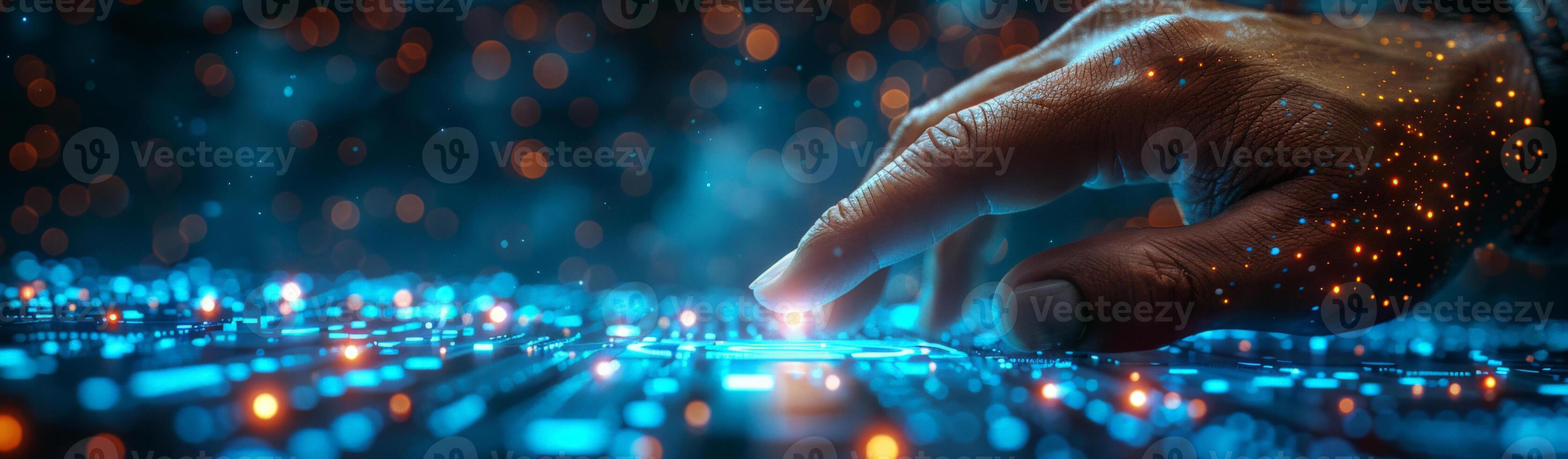 A hand is interacting with a digital screen by pressing a button Pro Photo