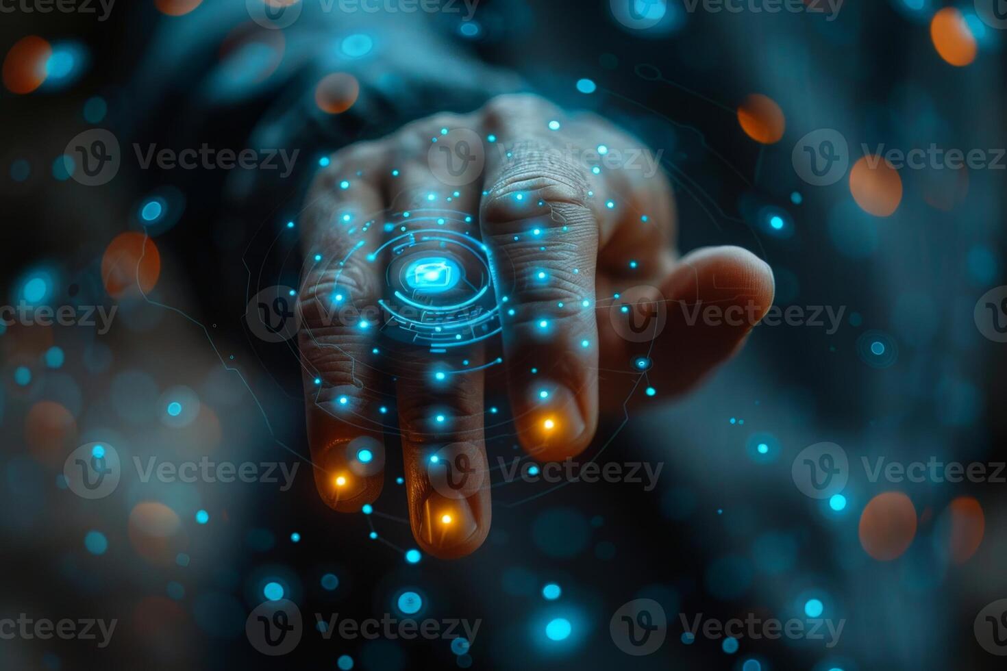 A person is touching a button on a hightech futuristic display screen Pro Photo