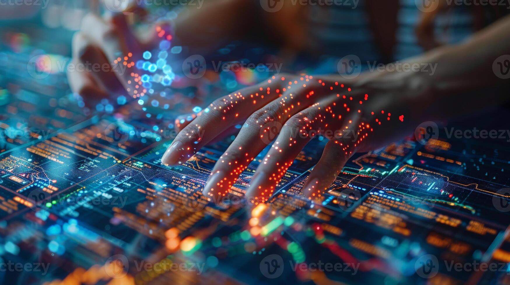 A close up image of hands interacting with a modern touch screen device Pro Photo