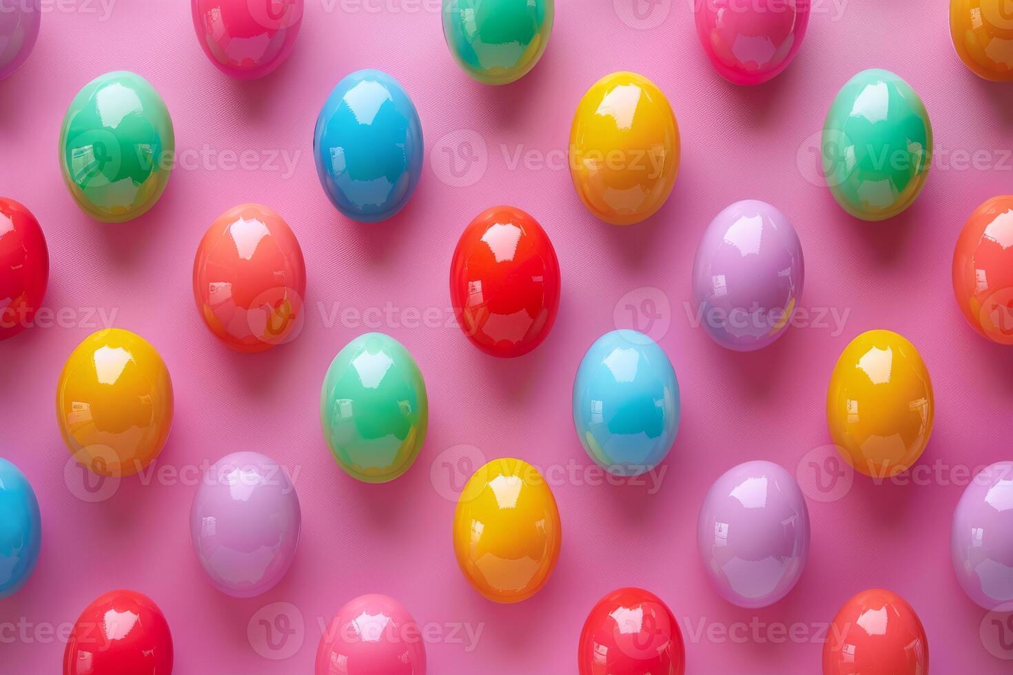 Colorful Easter eggs arranged in a pattern against a vibrant backdrop Pro Photo