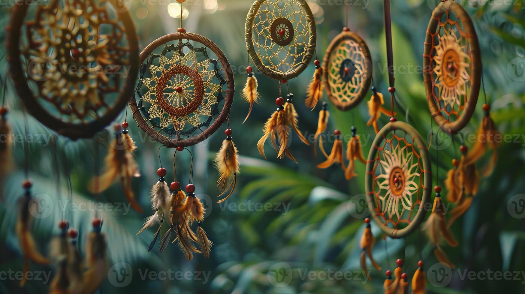 Bohemian dreamcatchers with intricate patterns and earthy tones create a serene and peaceful atmosphere against white Pro Photo