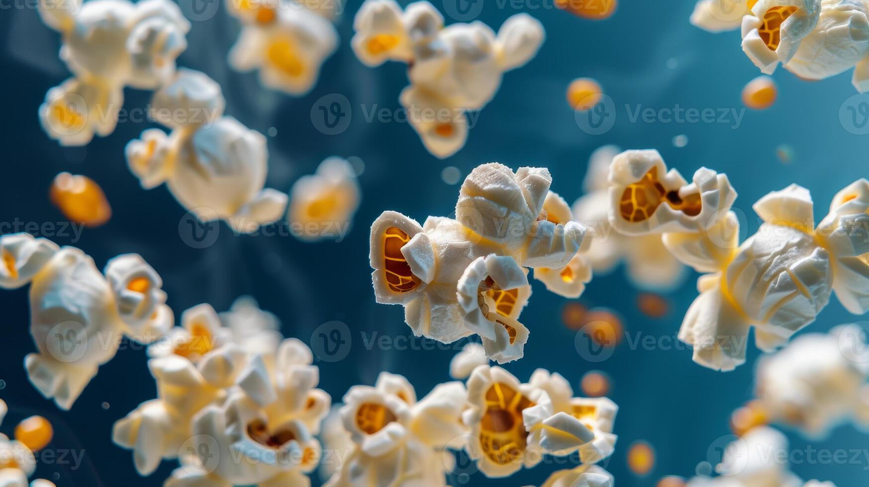 Playful layout of spinning popcorn kernels in a random pattern Pro Photo
